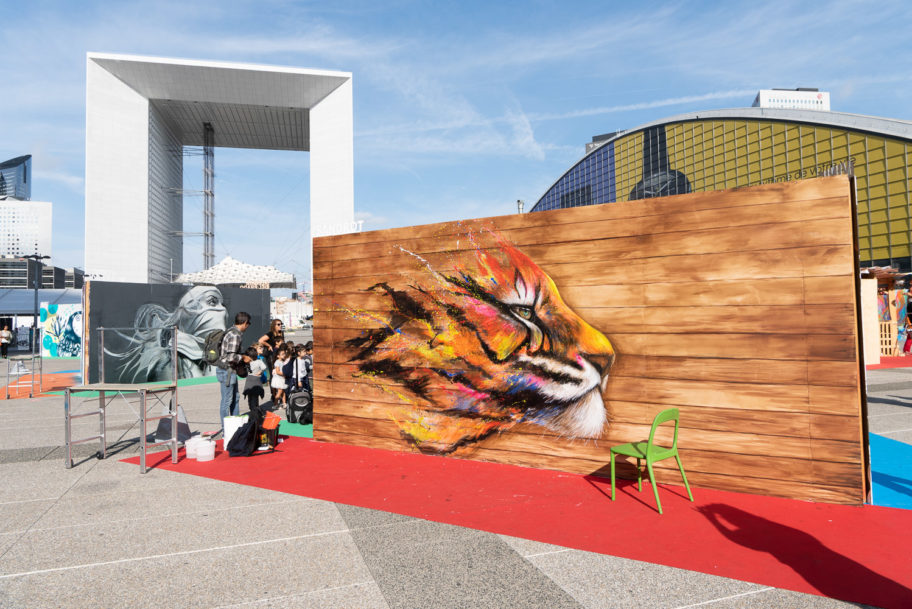 Exposition Street Art dans un hangar.